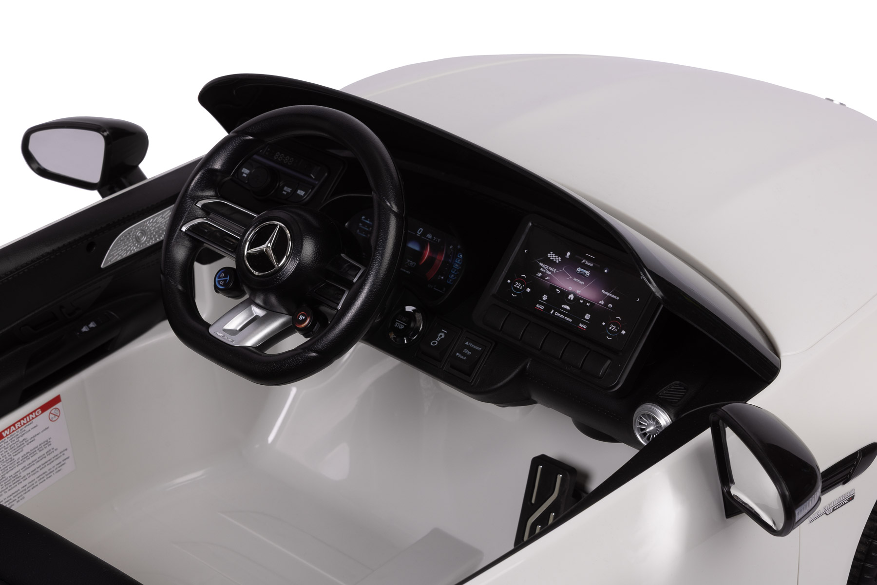 Thanks to the efficient 12V battery with a capacity of 7Ah, the electric Mercedes S63 AMG provides long playtime on a single charge. This is an excellent solution for children who love spending time outdoors and don’t want to constantly interrupt their driving to recharge the battery.