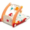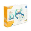 A walker with a 2-in-1 music mat is a colorful toy for babies who are taking their first steps. The mat is equipped with a headband with rattles in the shape of friendly animals hung on it and a mirror that will delight the baby. After loosening the front wheels and detaching the mat, the child can easily guide his pusher. A multimedia panel with large buttons will make the fun more enjoyable, and the sensory toys mounted on the sides will help in the child’s development. The toy is suitable for children from the first moments of life.
